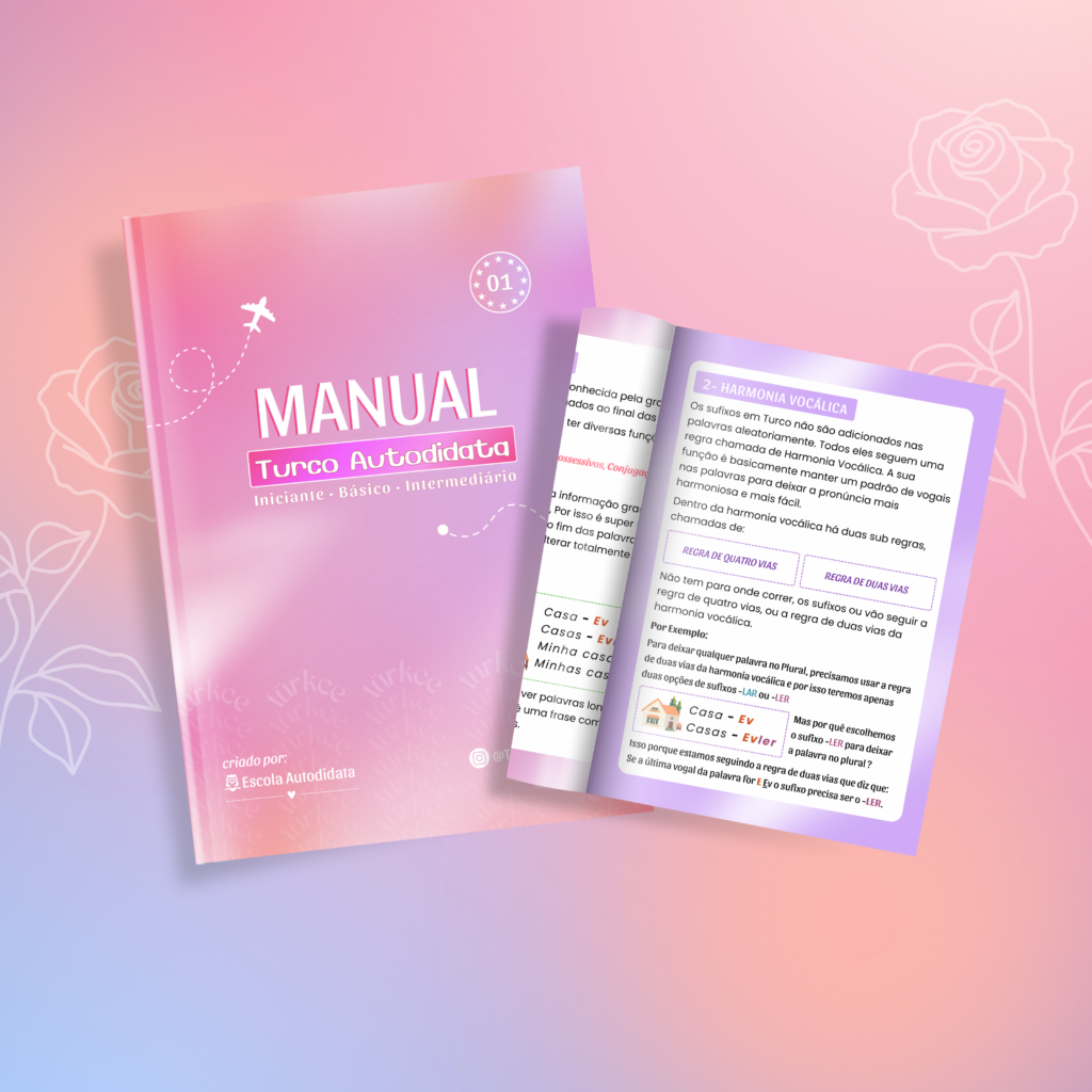 Eu já tinha tentado aprender turco antes, mas com esse Manual eu realmente vi progresso! Muito conteúdo útil e explicações muito claras, teşekkür ederim!