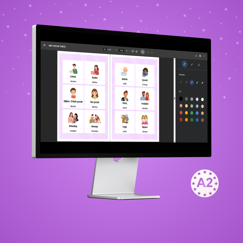 O minicurso vai te ensinar 1.500 palavras temáticas em turco que todo estudante precisa conhecer, de forma ilustrada e lúdica!