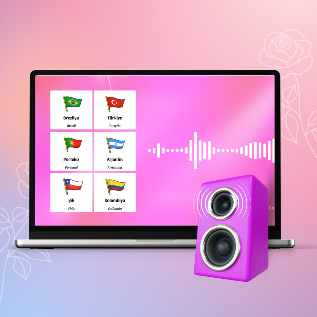 Com a pronúncia nativa das palavras em turco para facilitar a memorização.